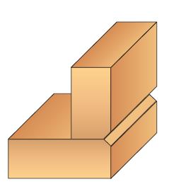 Mèche 2 coupes. Affleurage des chants avec rainure en «V» dans le bois en suivant un gabarit.