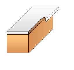 Mèche 2 coupes. Affleurage des chants dans les bois durs et panneaux mélaminés et stratifiés, en suivant un gabarit.